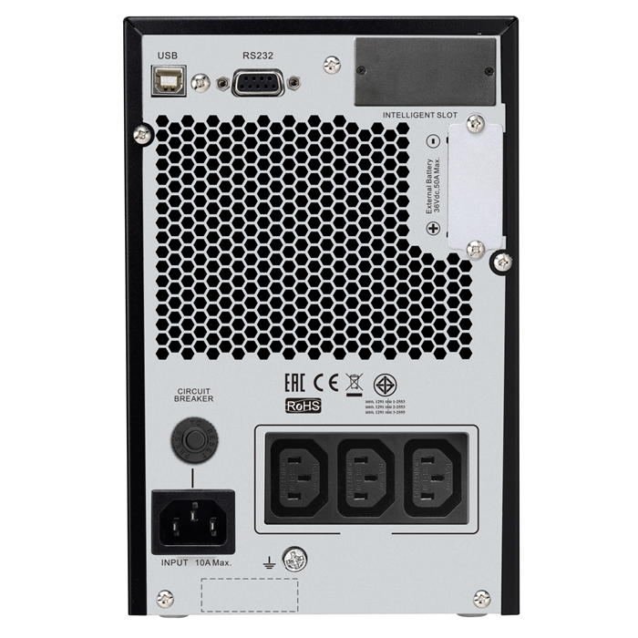 This APC Single phase Easy UPS is designed for IT professionals or network administrators to maintain business uptime and continuity. This 1000VA double-conversion on-line tower UPS provides pure sine wave power and extended runtime to support critical electronics during power disruptions. The SRV comes with IEC 320 C14 input and 3x IEC 320 C13 outlets. The UPS can connect to EcoStruxure IT or third-party centralized management platforms. The Built-in automatic and manual bypass provide seamless power to the load even in the event of an internal detected fault or error in UPS.