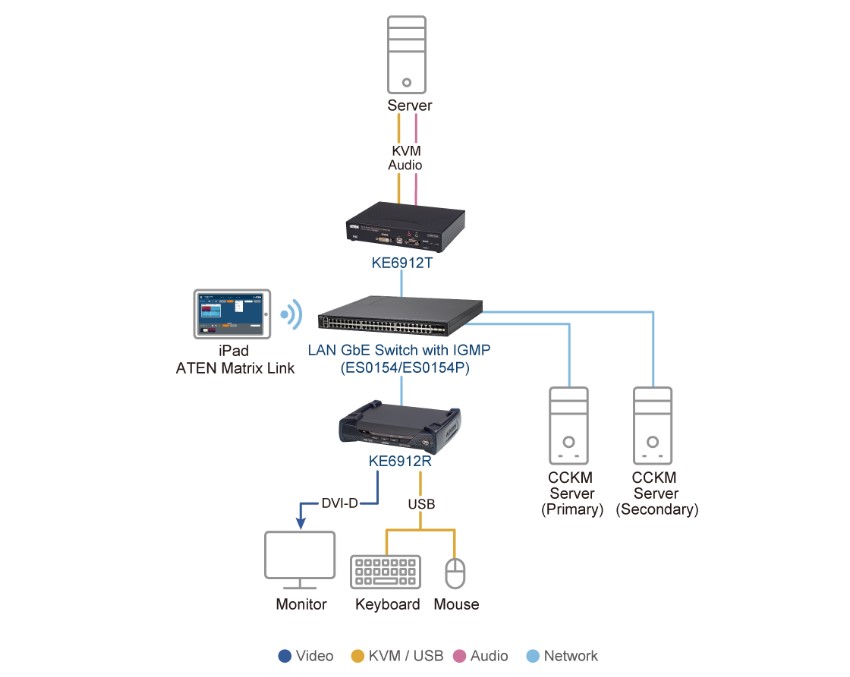 When integrated with the CCKM, the KE6912 supports more advanced features such as authentication lock, connection redundancy, disconnection alert, boundless switching, “Push’ and “Pull’, video wall and multi-display setups, and profile scheduling that provide uninterrupted access with quick and easy control tools to use the KE6912 over a network.