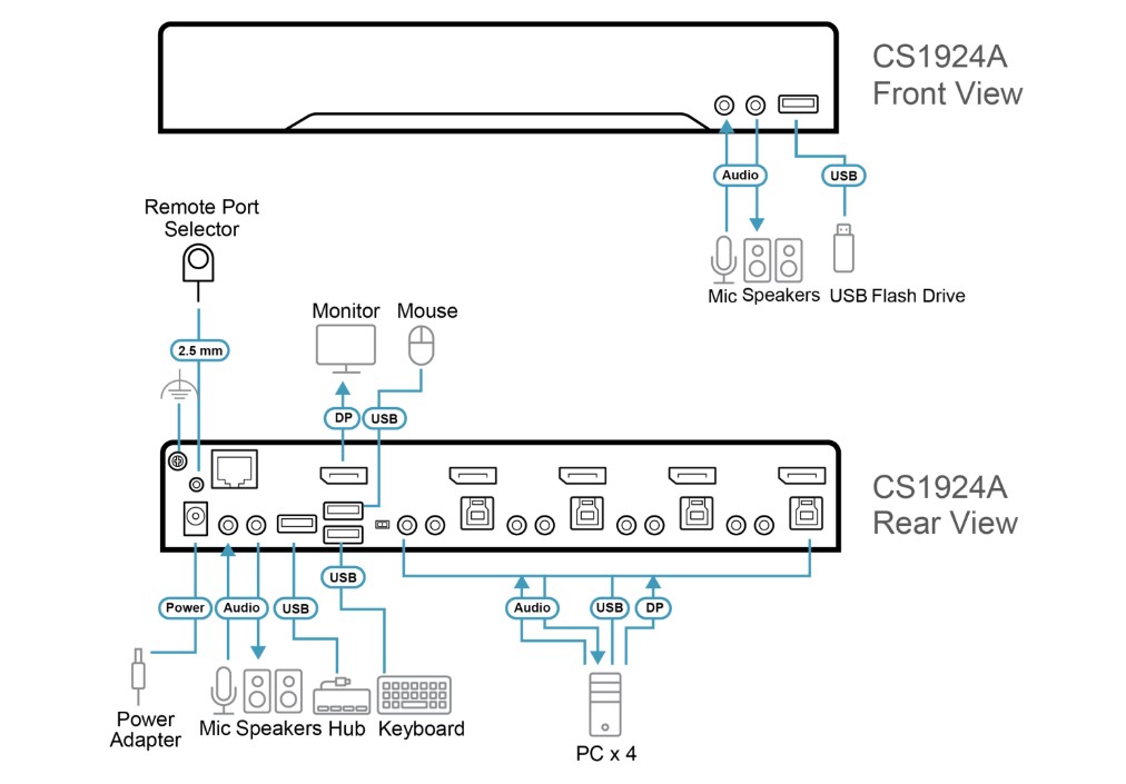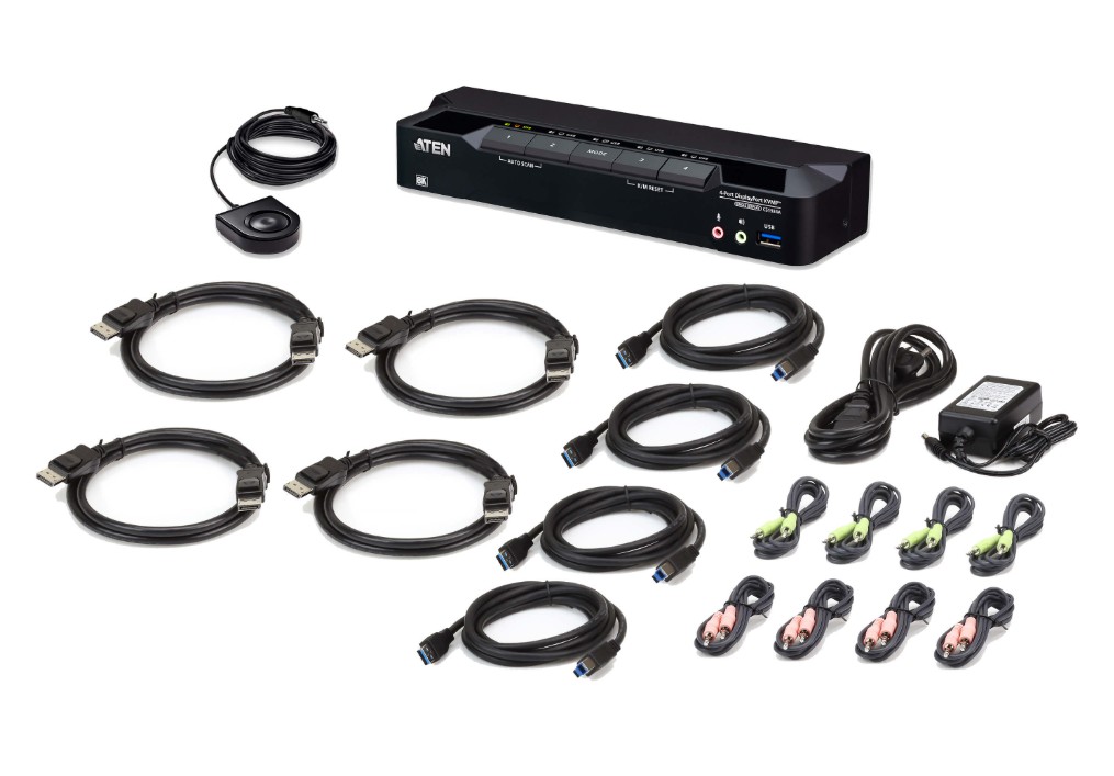 Control four computers with a single USB keyboard and mouse while sharing USB peripherals and enjoying ultra-high-resolution video.
