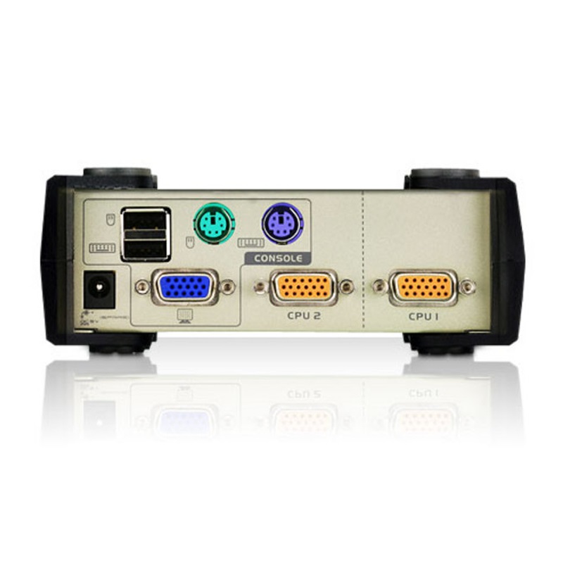 Aten Desktop KVM Switch 2 Port Single Display VGA, Both USB PS/2 Options, Custom Cables Included, Selection Via Front Panel,
