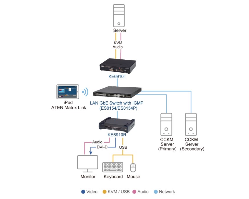 When integrated with the CCKM, the KE6910 supports more advanced features such as authentication lock, connection redundancy, disconnection alert, boundless switching, “Push’ and “Pull’, video wall and multi-display setups, and profile scheduling that provide uninterrupted access with quick and easy control tools to use the KE6910 over a network.