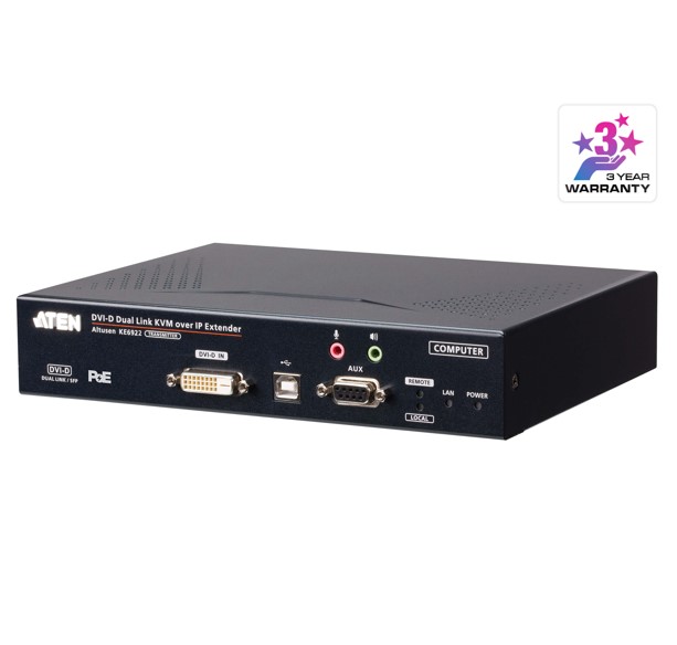 The KE6922 is a high performance IP-based extender consisting of a transmitter (KE6922T) and a receiver (KE6922R). The transmitter connects to a computer to deliver the computer’s data to the receiver to collectively provide console access from a remote or separate location. The KE6922 allows extended access of computer systems remotely via USB consoles (USB keyboard, USB mouse, DVI monitor) over intranet, enabling users to place the computer system in secure and temperature controlled environments, which maybe isolated from users’ workstation.