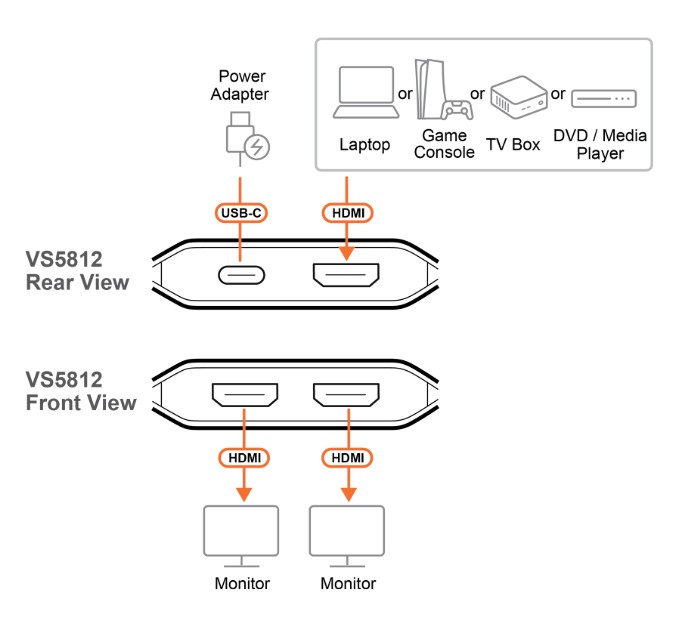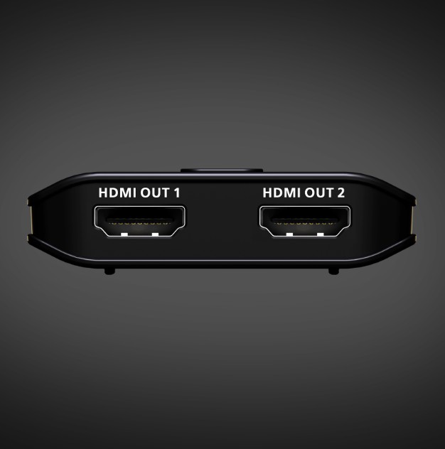 Shares one HDMI source across two displays, delivering simultaneous 8K @ 60Hz and 4K @ 120Hz visuals