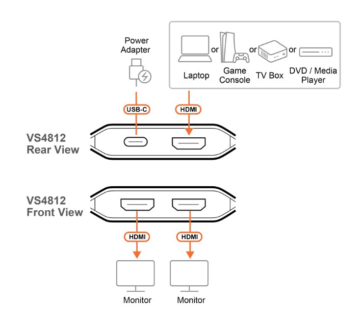Shares one HDMI source across two True 4K displays for double the visual impact with uncompromised quality