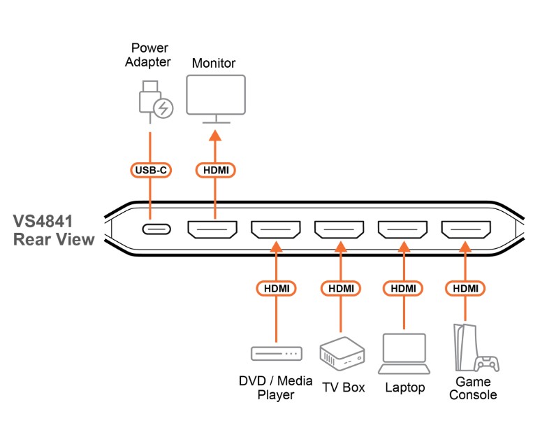 Aten Essential 4-Port True 4K HDMI Switch, HDMI switch for home entertainment, four HDMI sources on a single True 4K display, LPCM 7.1, Dolby® | VS4841-AT