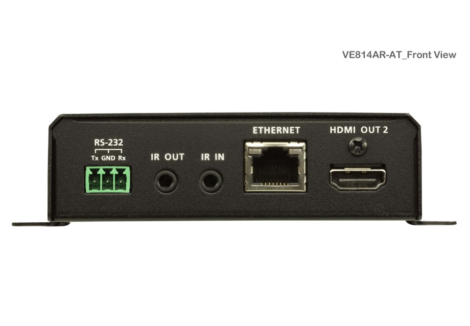 The VE814AR supports RS-232 and IR signaling pass-through, allowing you to control the HDMI source device from the remote unit (VE814AR) while granting access to the HDMI display device from the local unit (VE814AT). In addition, it supports Long Reach Mode that extends HDMI signals up to 150 m, 1080p, via a single Cat 5e/6 cable.