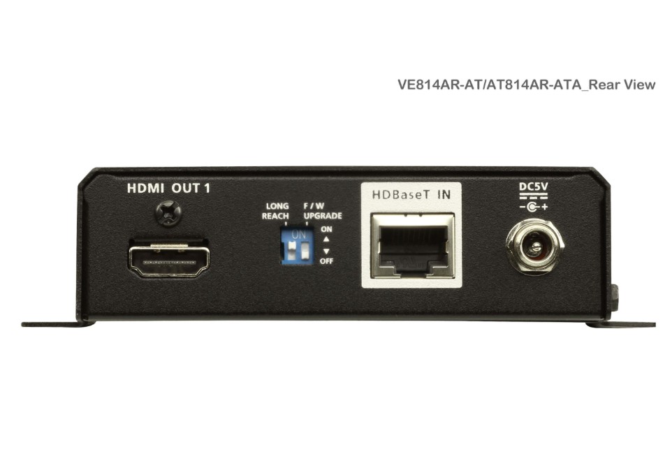 ATEN VE814AR is an HDBaseT Video Receiver that is capable of receiving HDMI signals up to 100 m over a single Cat 5e/6/6a or ATEN 2L-2910 Cat 6 cable.This HDCP 2.2-compliant receiver meets the HDMI Specification, including 3D, Deep Color, the maximum data rate of (10.2 Gbps), and 4K video quality up to 100 m.