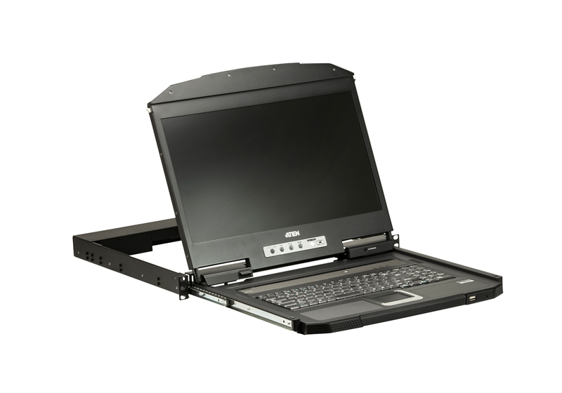 The CL3100 USB VGA LCD Console is a short depth single rail LCD KVM console featuring an 18.5′ LED-backlit widescreen LCD monitor with an integrated keyboard and touchpad. The short-depth design fits all 19′ equipment cabinets, and is especially suitable for shallow racks. The CL3100 provides an ideal space-saving solution for special environments such as outside broadcast vans (OB vans) and compact control rooms.