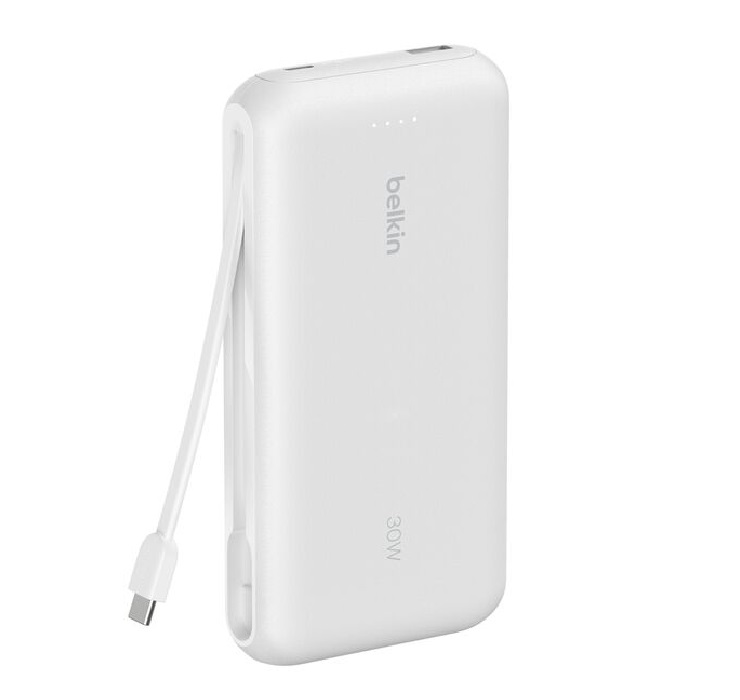 Belkin BoostCharge 20K mAh Power Bank With Integrated USB-C Cable – White (BPB024fqWH)