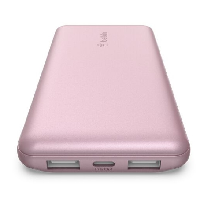 Belkin BoostCharge 10k mAh Power Bank (Triple-Port) + USB-C to USB-A Cable – Pink (BPB011btPK)