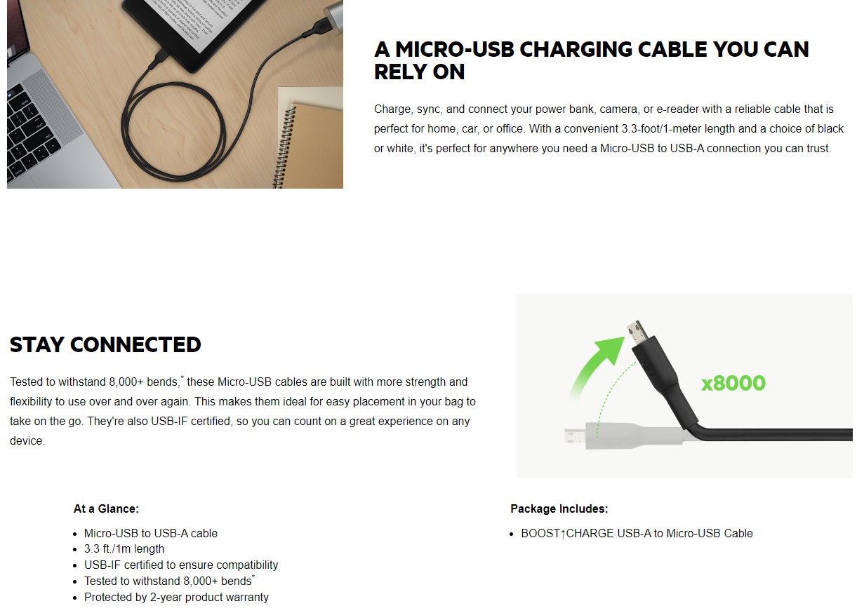 Belkin BoostCharge USB-A to Micro-USB Cable (1M) – Black (CAB005bt1MBK),7.5W,480Mbps, 25K+ Bends,Compatible With Micro-USB Device.2 Years Warranty | CAB005bt1MBK
