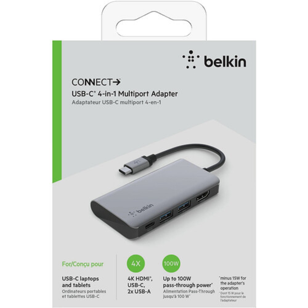 Belkin Connect USB-C 4-in-1 Multiport Adapter + USB-C Cable (13CM) – Space Grey (AVC006btSGY)