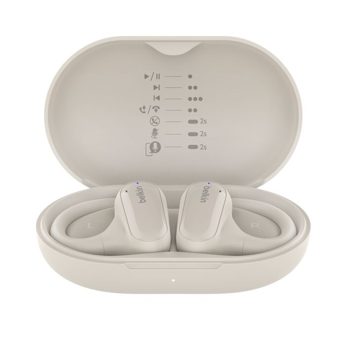 Belkin SoundForm ClearFit New Open-Ear Wireless Earbuds – White (AUC013btSA), Bluetooth 5.3 Pairing, IPX5-Rated, 14.2mm Drivers, 2 Years Warranty | AUC013btSA