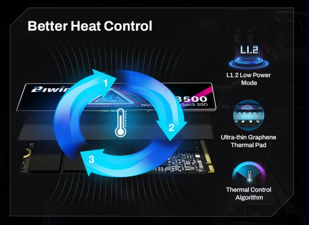 NV3500 offers premium performance in heat dissipation through L1.2 low power mode, a thermal control algorithm, and an ultra-thin graphene pad, for the best experience.
