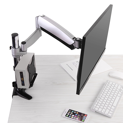 With the CPB-1 multifunctional thin client mount, placing your CPU in a convenient, accessible place has never been easier. You’ll be able to mount your CPU instead of leaving it on the floor to take up your foot space! The universal design adapts to the dimensions of the box, while its mounting interface attaches to a variety of surfaces: a VESA plate, directly to a desk, clamped to a pole. Straps are included for increased stability. It’s weight capability is 5kg/11lbs. The CPB-1 is not only a great organizational tool, but also reduces CPU’s internal contamination and extends equipment life.