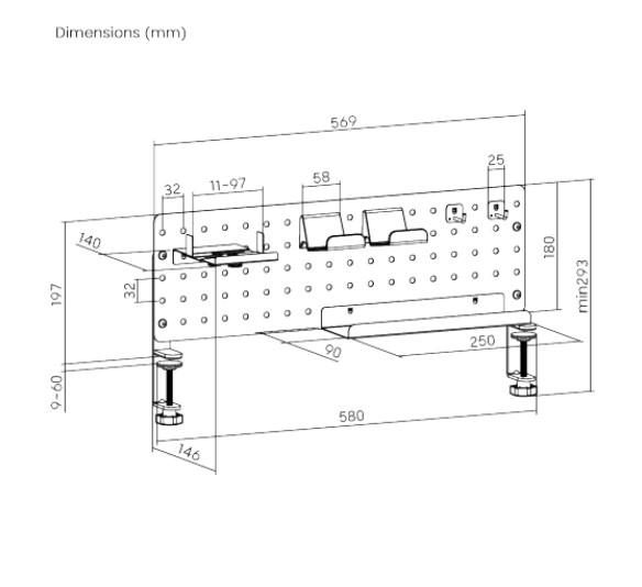 Brateck GMPB-05-02-B CLAMP-ON DESK PEGBOARD ORGANIZER WITH STORAGE KITS (BLACK) (LS) | GMPB-05-02-B