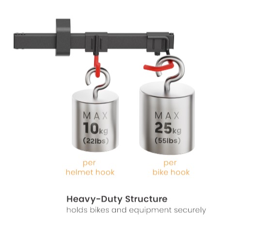 Weight Capacity (bike hanger/per unit): 25kg (55lbs)