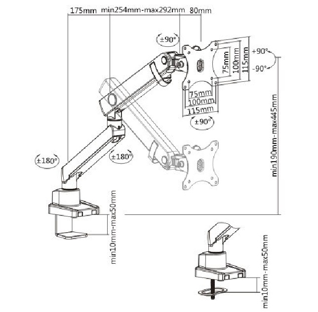 Suggested Desktop Thickness: Clamp:10~50mm Grommet:10~50mm (Clamp:0.39’~2′ Grommet:0.39’~2′)