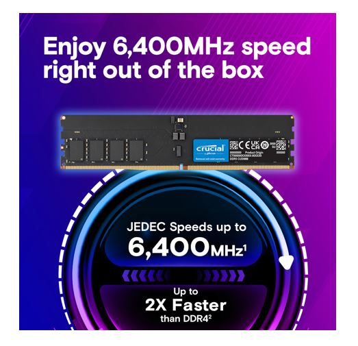 Crucial 16GB (1x16GB) DDR5 CUDIMM 6400MHZ CL52 Desktop PC Memory for Intel Core Ultra Processors AI PC