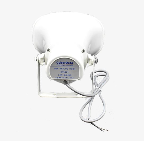 The CyberData 011471 IP66 Outdoor Analog Horn is a heavy duty horn rated for outdoor use, while also being appropriate for warehouses, manufacturing plants, garages and any environment needing loud paging.