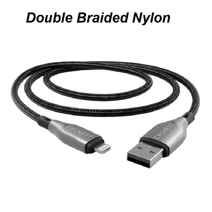 Cygnett Armoured Braided Lightning to USB-A (2.0) (2M) Cable – Black (CY4660PCCAL), 2.5A/12W, 480Mbps, Turbo Charge, Apple iPhone, 5 Years Warranty | CY4660PCCAL