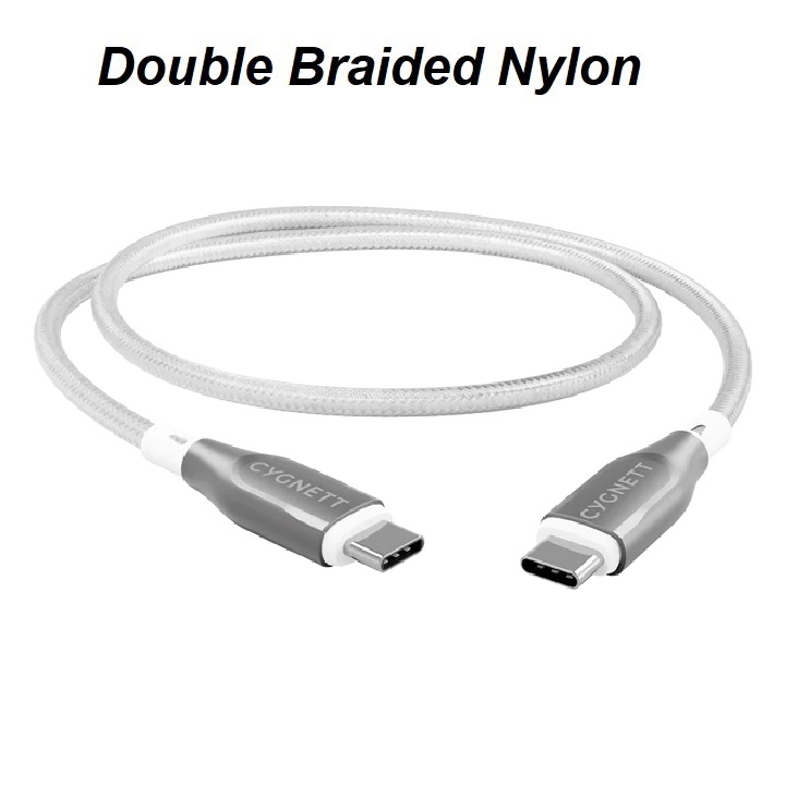 Cygnett Armoured Braided USB-C to USB-C (2.0) Cable (1M) – White (CY4675PCTYC), 5A/100W, 480Mbps, Turbo Charge, Best for Laptop, 5 Years Warranty | CY4675PCTYC