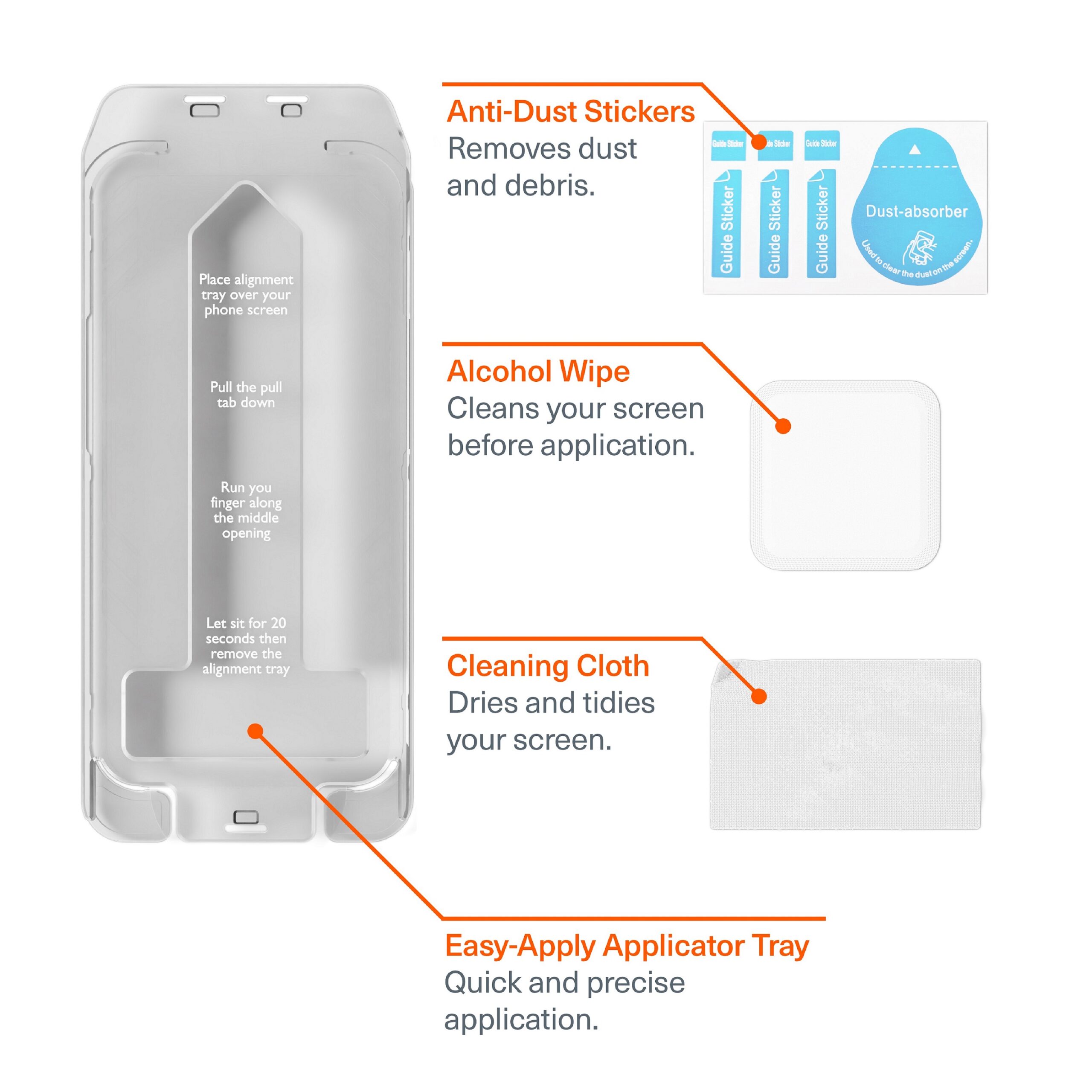 Includes easy screen protector application kit