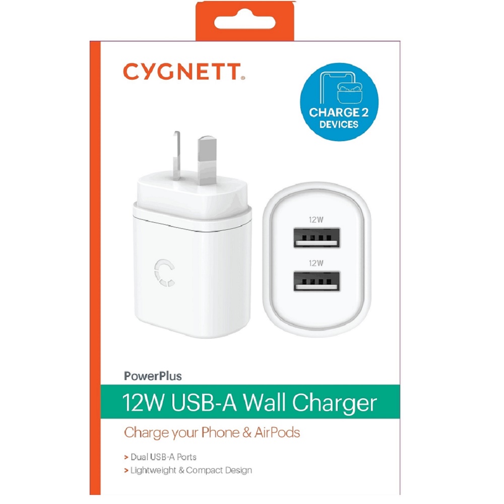 Cygnett PowerPlus 12W Dual Port Wall Charger – White (CY3671PDWLCH), 2x USB-A (12W), Lightweight Compact Design, Charge 2x Devices, 2 Years Warranty | CY3671PDWLCH