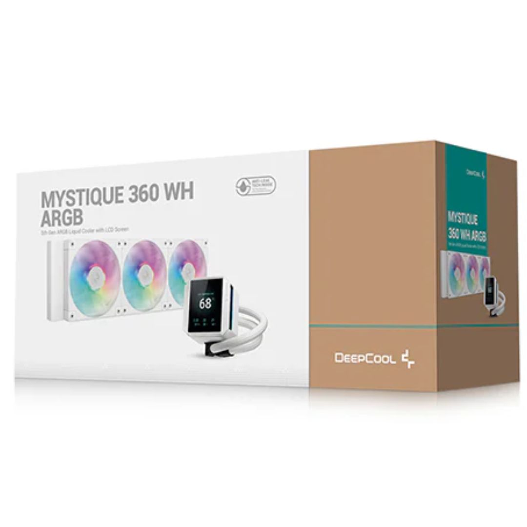 MYSTIQUE 360 WH ARGBThe MYSTIQUE 360 WH ARGB is DeepCool’s latest addition to the flagship line of liquid coolers with highly sought-after customizable LCD screens. Bring your creative style to life with customized images and animated gifs on the brilliant 2.8′ TFT LCD screen! The MYSTIQUE ARGB line has been outfitted with a new set of vivid ARGB fans.