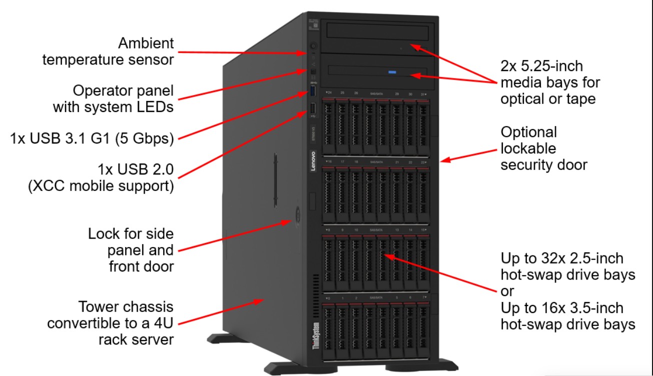 LENOVO ThinkSystem ST650 V3, 1xIntel Xeon Gold 5416S 16C 2GHz 150W, SFF, 1x32GB 2Rx8, ThinkSystem RAID 9350-8i 2GB Flash PCIe 12Gb Adapter, 1x750W | 7D7AA01LAU