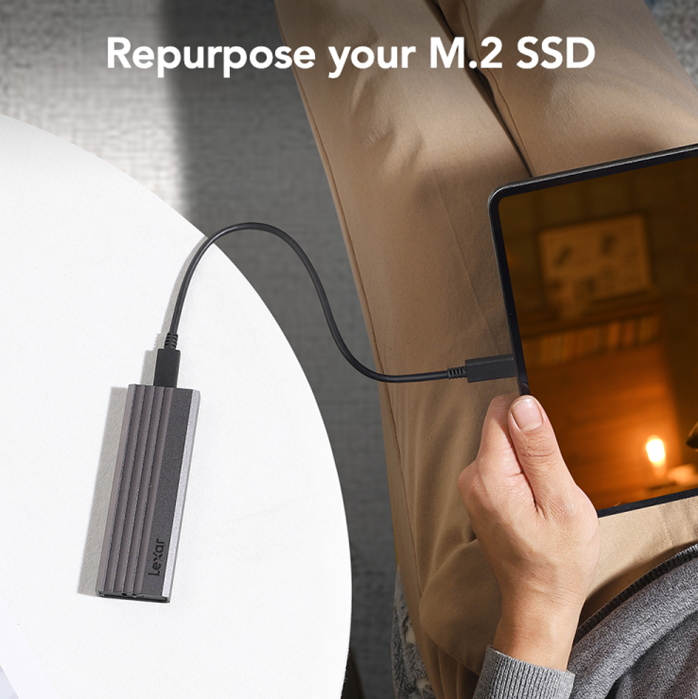 Lexar M.2 SSD Enclosure USB 3.2 Gen2 Supports M.2 NVMe SATA SSD 1 C To C Cable
