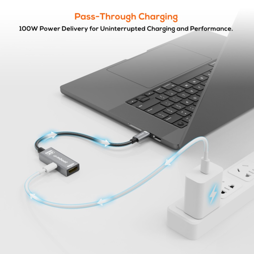 The adapter supports 100W Power Delivery pass-through charging, ensuring your laptop stays charged while you work, game, or stream. Enjoy uninterrupted display functionality and power delivery in one convenient connection.