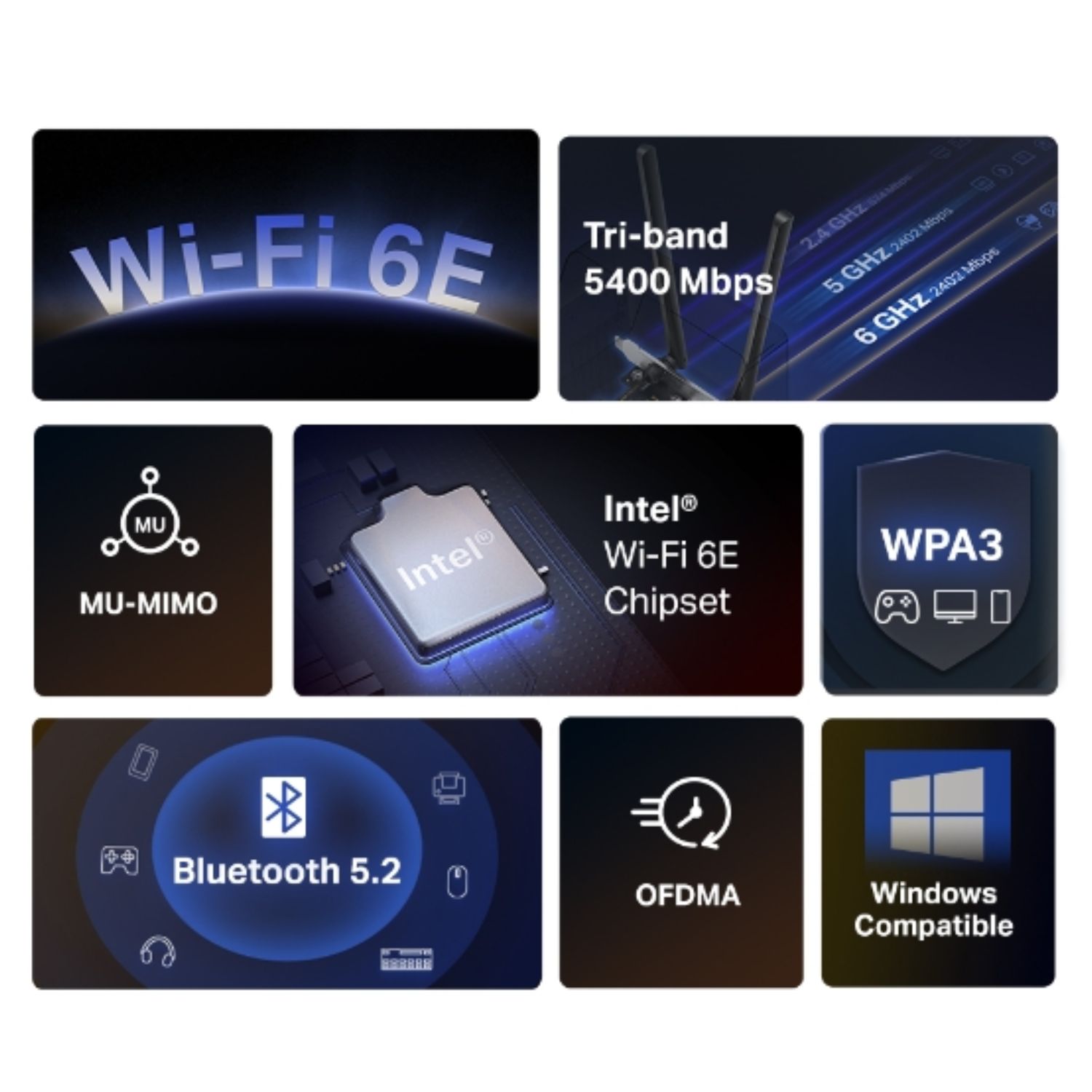 Mercusys MA86XE AXE5400 Wi-Fi 6E Bluetooth 5.2 PCIe Adapter, 2402Mbps @6GHz,2402Mbps @5GHz, 574Mbps@2.4GHz | MA86XE