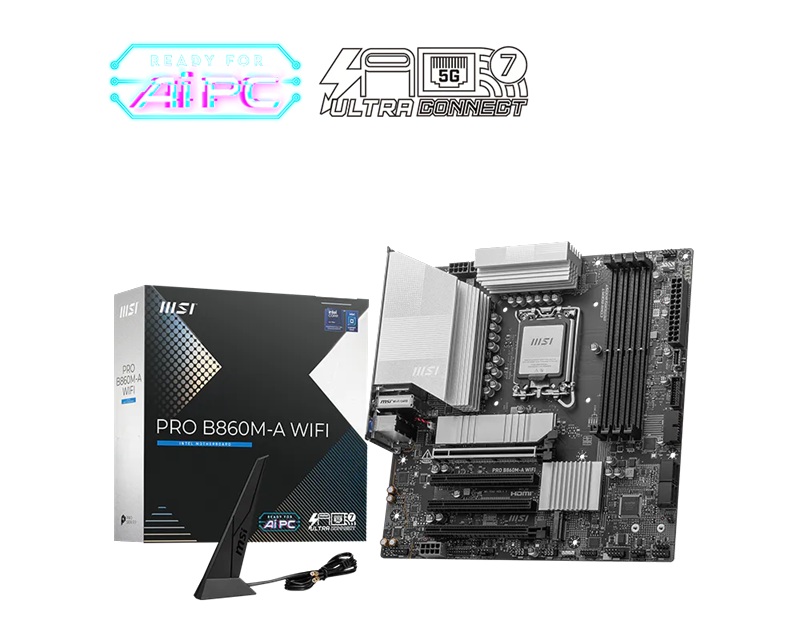 MSI PRO B860M-A WIFI, INTEL B860, 4x DDR5 256GB, 1x HDMI, 4x PCI-E x16 slot, 3x M.2, 4x SATA, 6x USB 2.0, Intel® Wi-Fi 7
