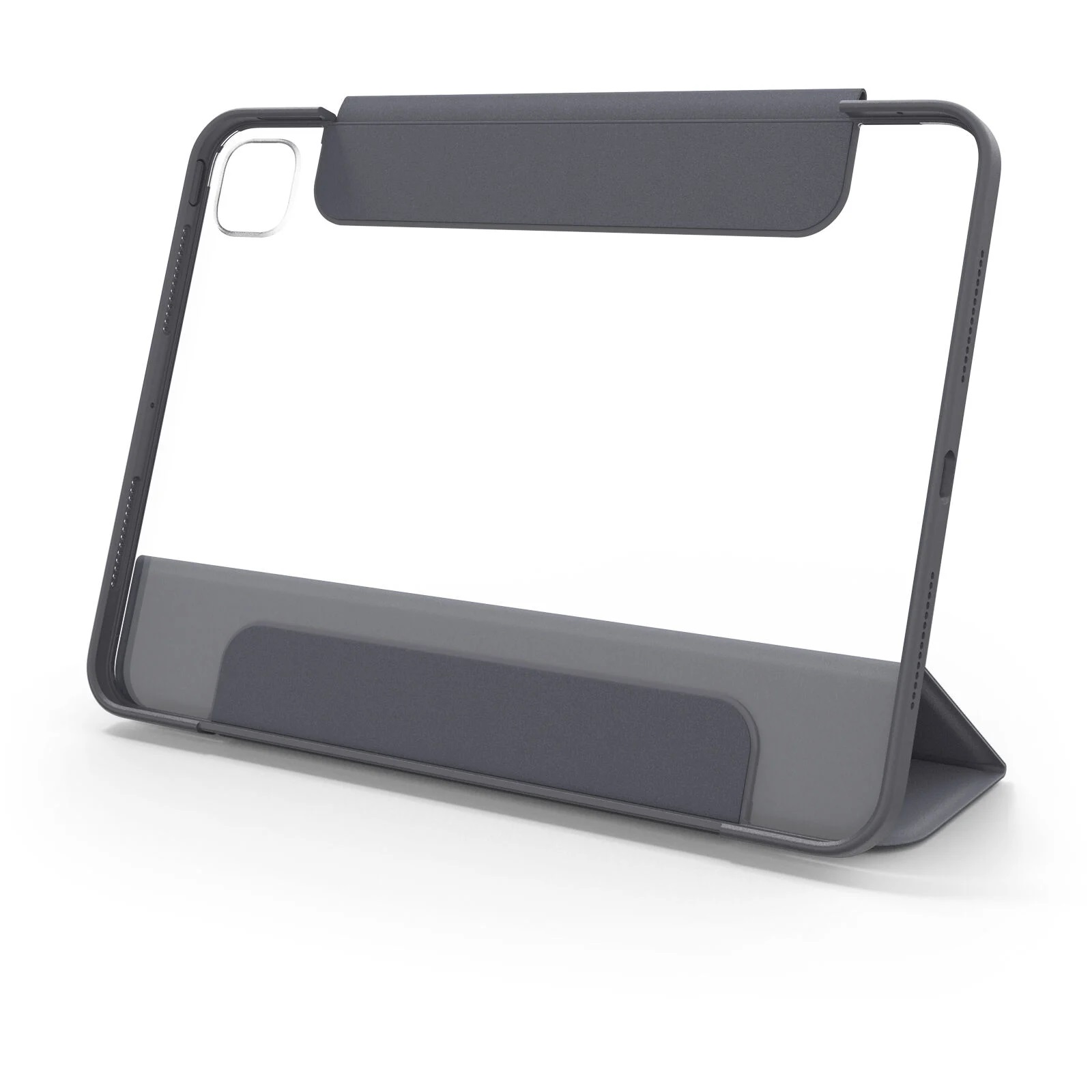 Clear folio iPad Pro 11-inch (M5/M4) case protects against drops and scratches and converts into multiple positions for hands-free typing and viewing. The folio’s microfiber lining guards the screen and holds tight with magnets, which also activate sleep/wake modes for quick-start functionality and battery preservation.