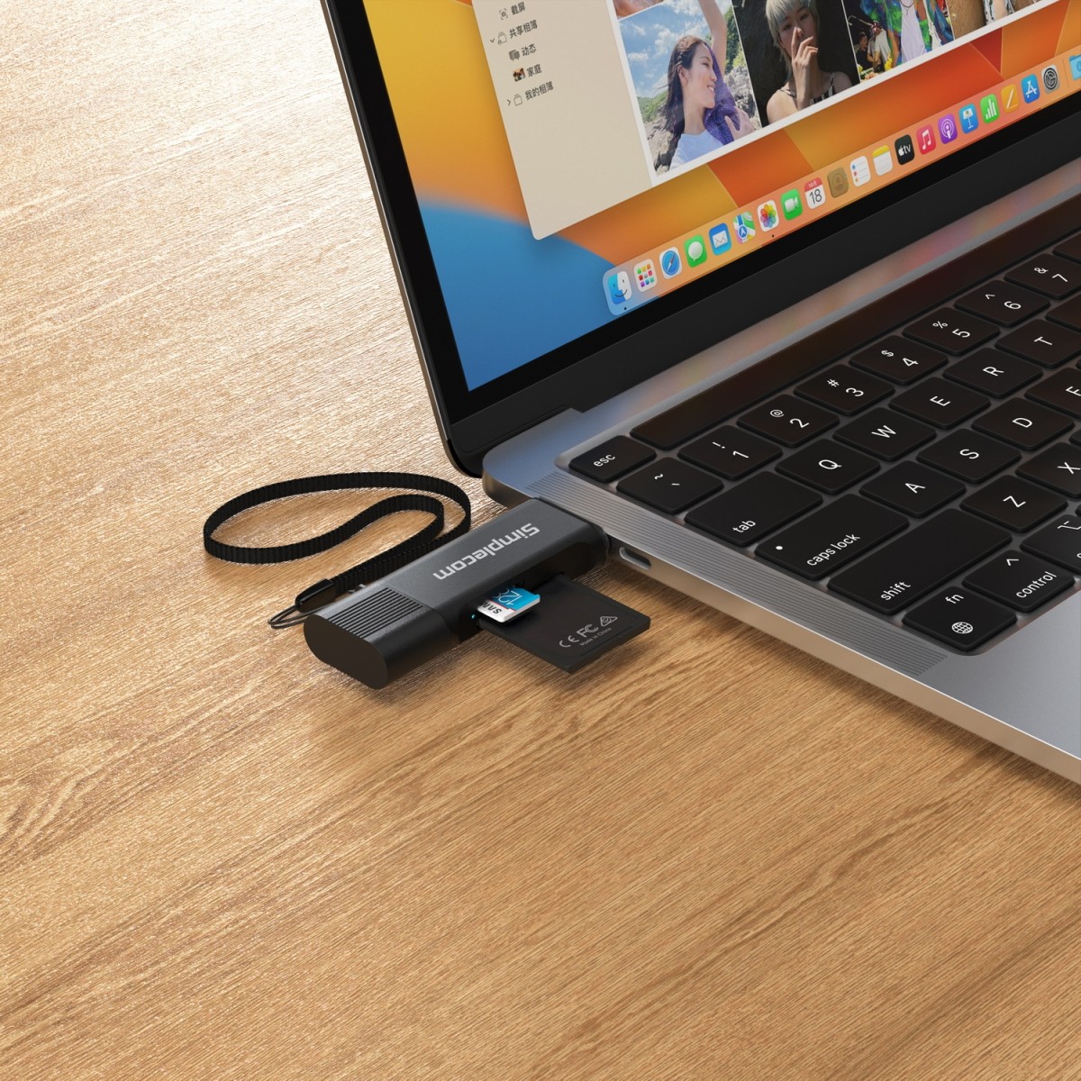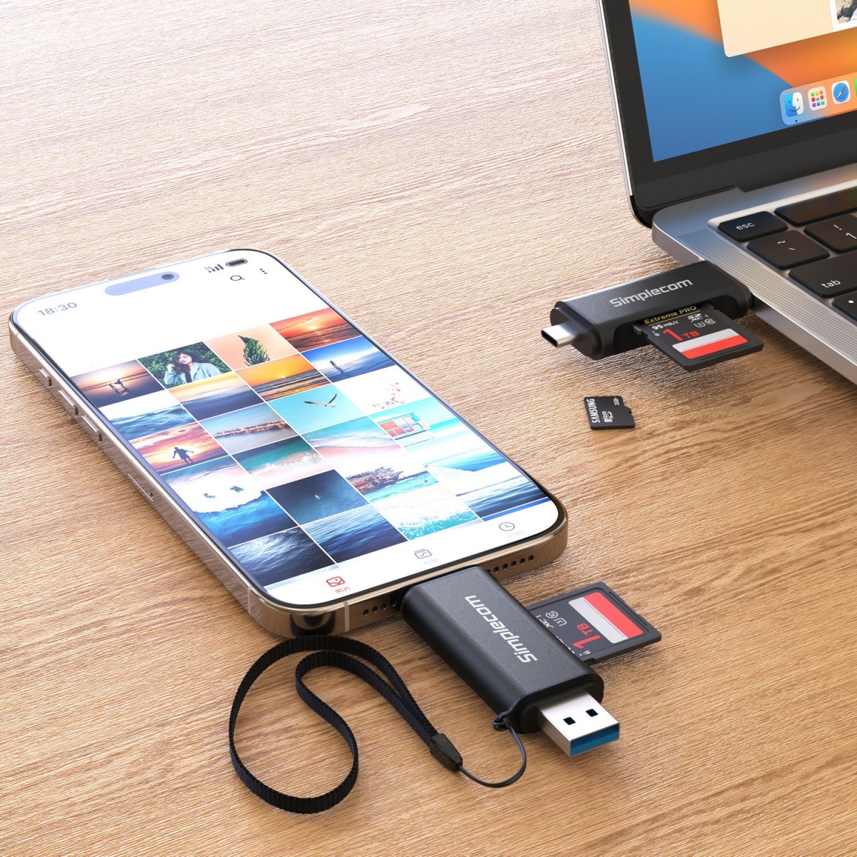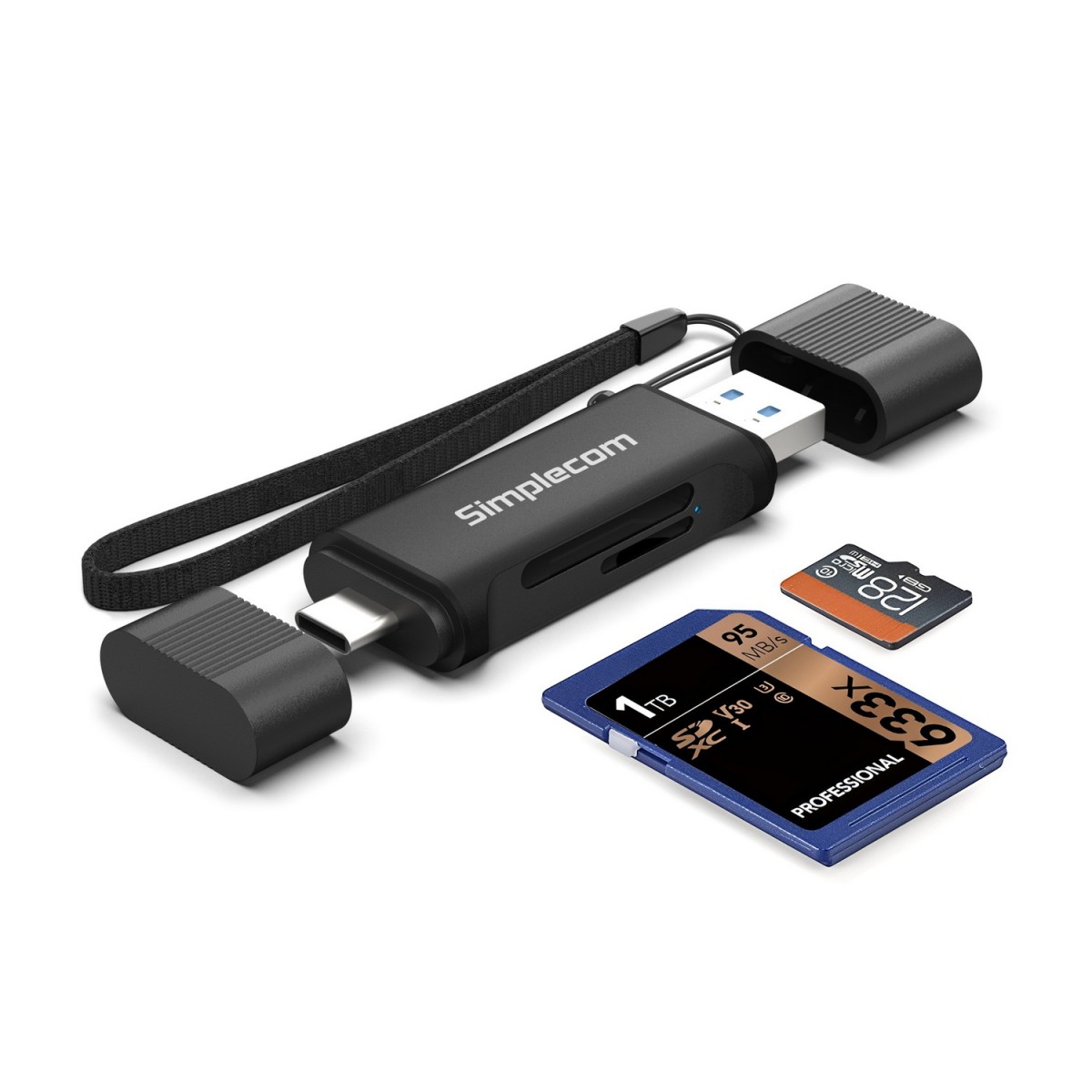 Simplecom CR402B SuperSpeed USB-C and USB-A Dual Slot Card Reader for SD MicroSD USB 3.2 Gen 1 | CR402B