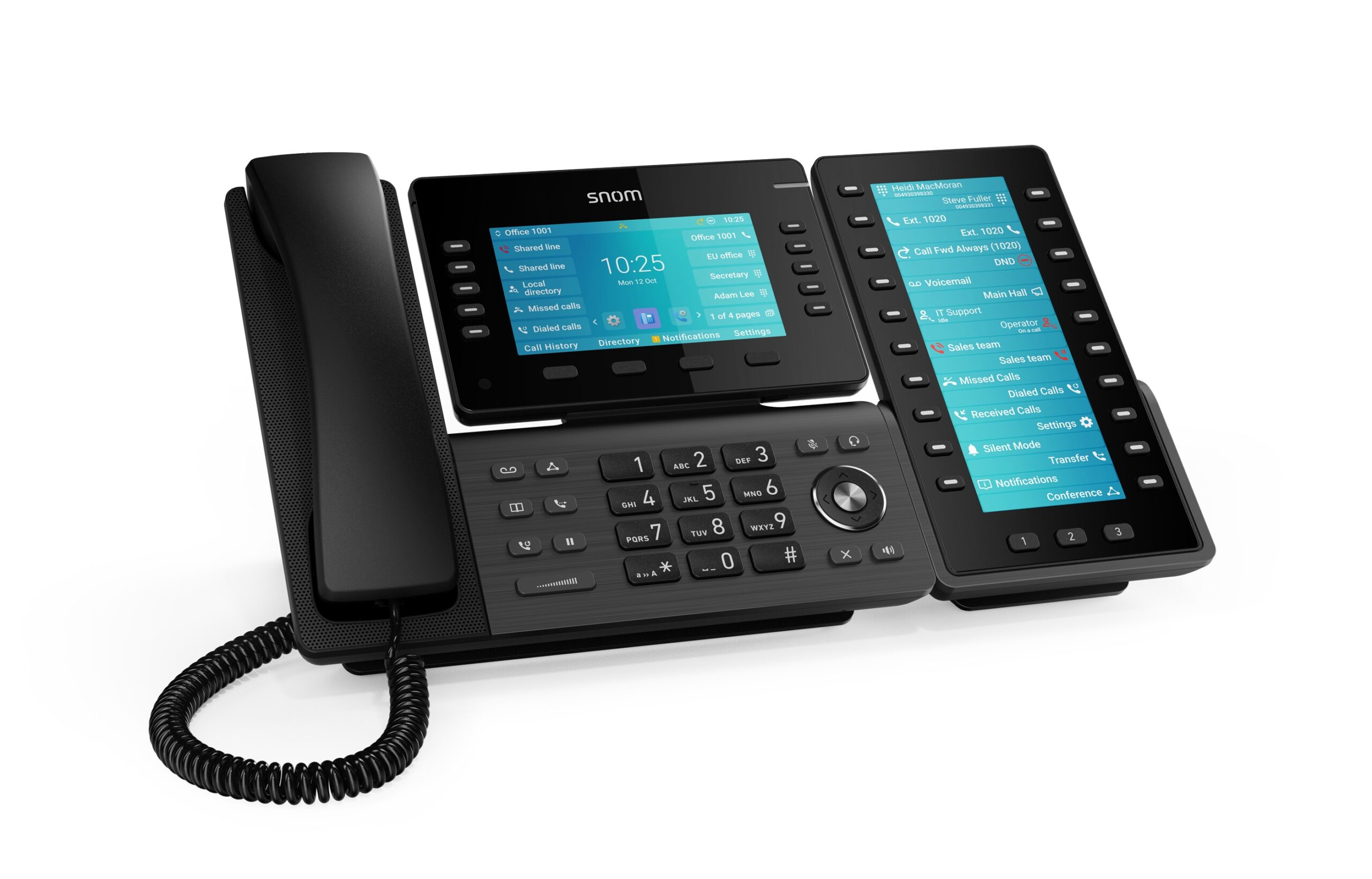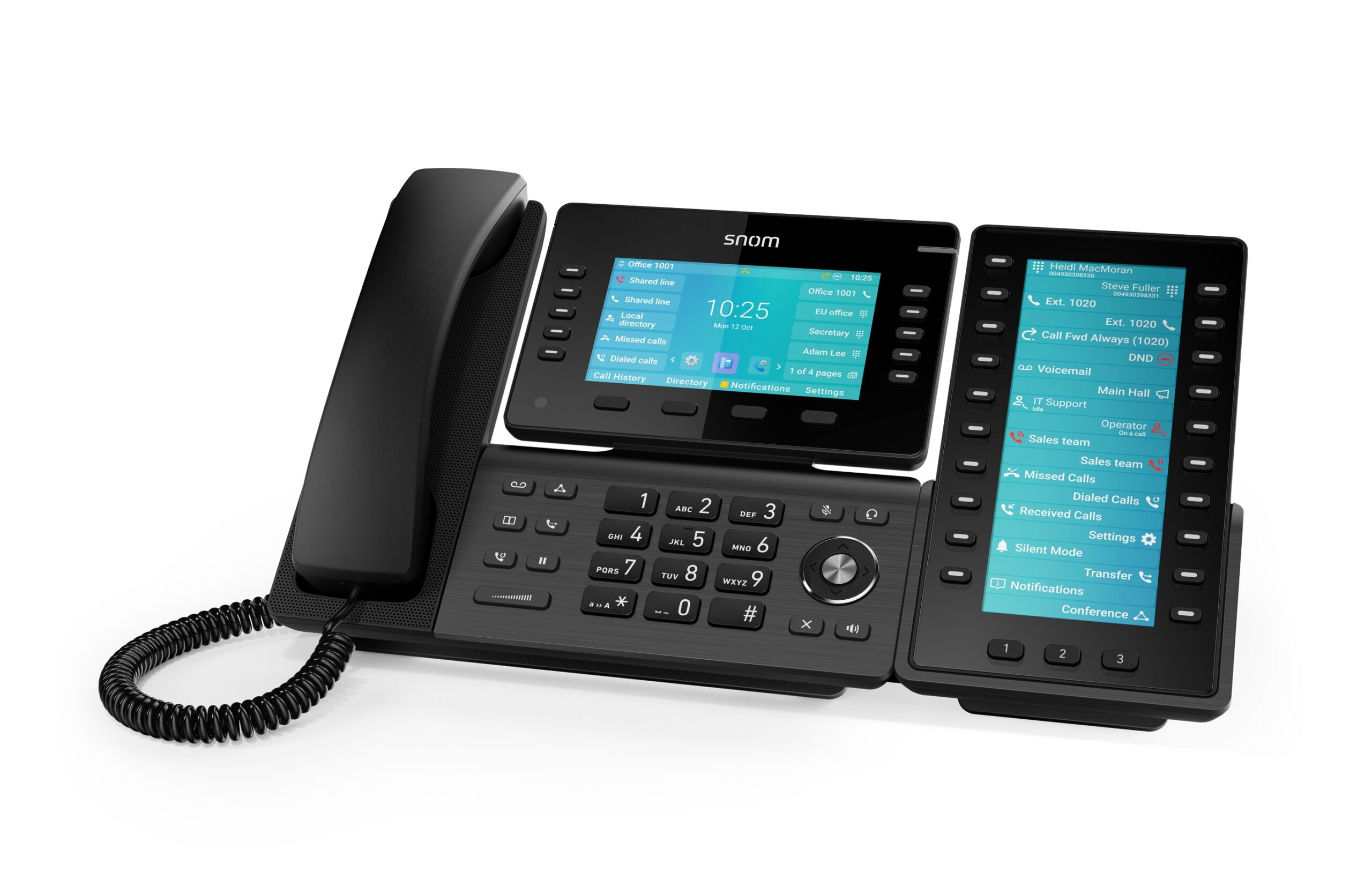Connected to the telephone via USB using plug and play, the Snom D8C expands the D8xx series telephones with an additional large screen and a wide range of application options.