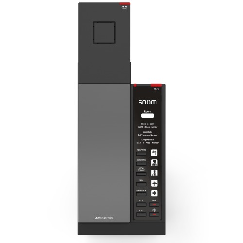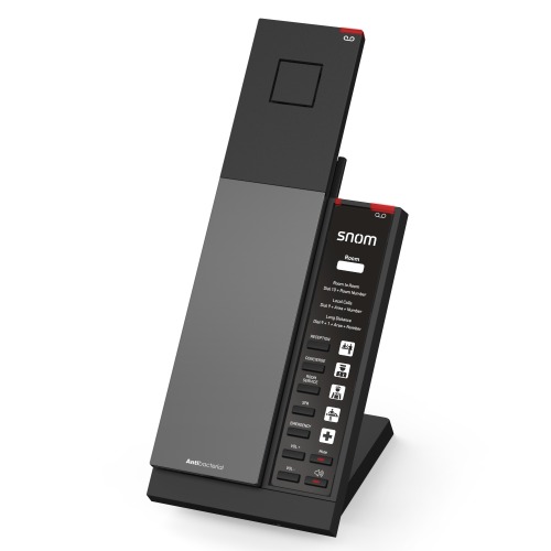 The Snom HD341 is designed for hotels and guest rooms that want to provide familiar cordless mobility without compromising on essential communication features. Featuring a wireless DECT handset, the HD341 delivers comfortable mobility for guests, while still maintaining a compact footprint suitable for desks, nightstands, or wall‑mount installations.
