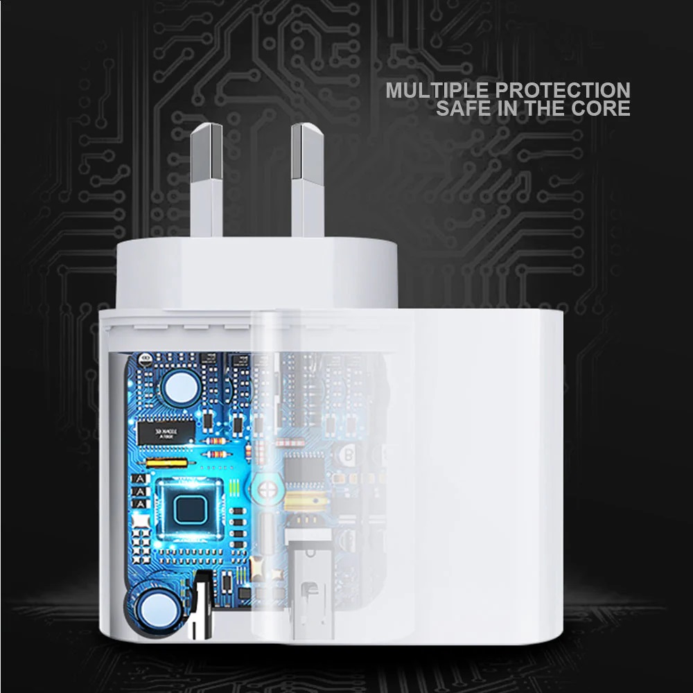 USP 30W Dual Ports (USB-C PD + USB-A QC3.0) Fast Wall Charger – Safe Charge,Compact, Travel Ready, Charge 2 Devices Simultaneously, FireProof Material | 6976552042581