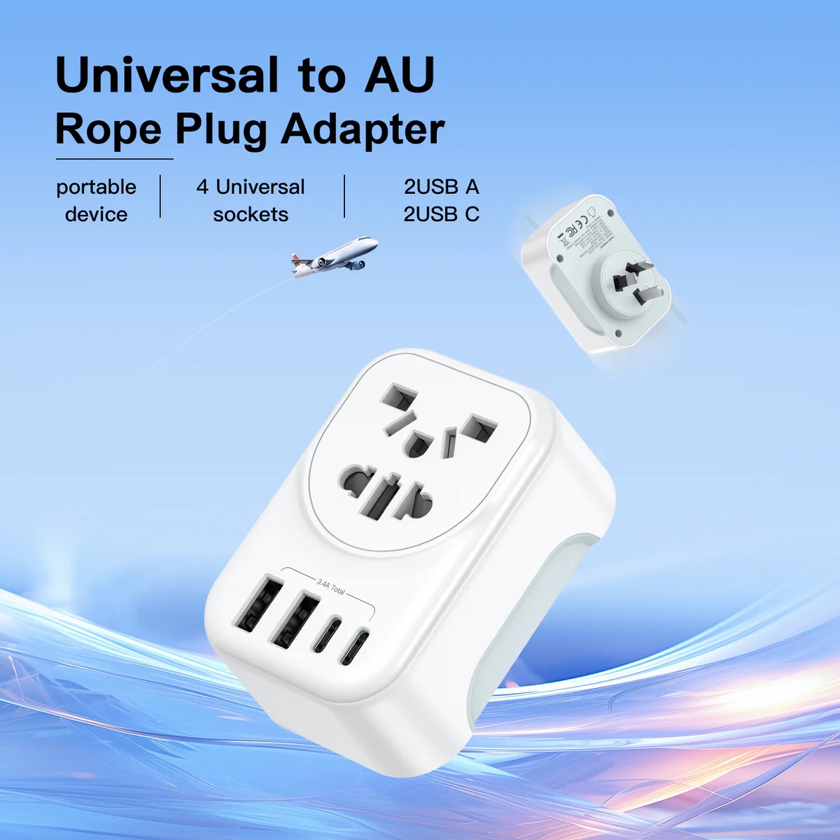 USP Australian Inbound Travel Adapter – 2 USB-A + 2 USB-C + AC Socket