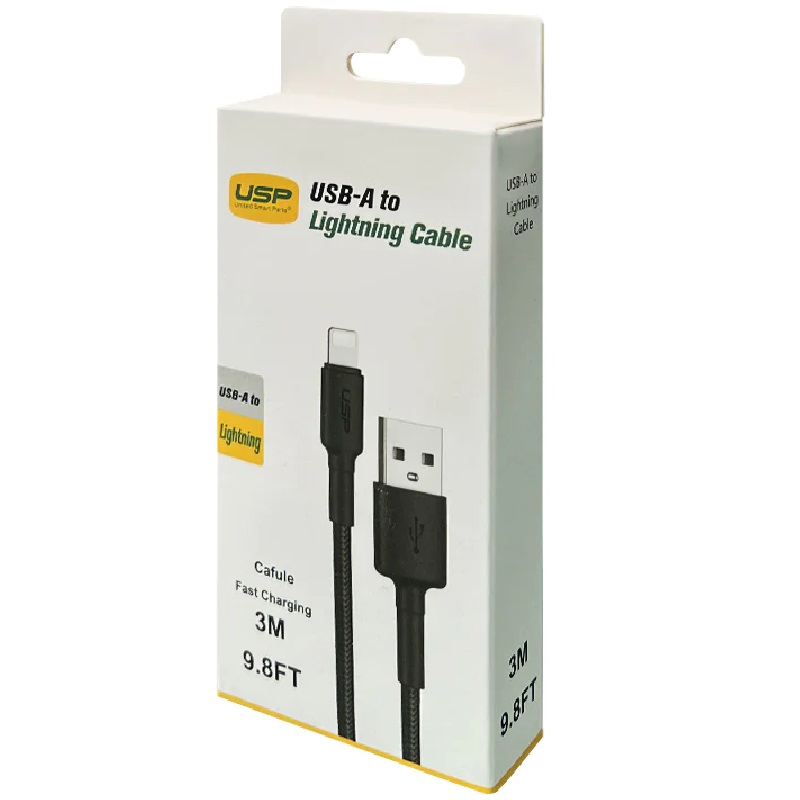USP BoostUp Lightning to USB-A Cable (3M) Black – Quick Charge Connect, 2.4A Rapid Charge,Durable Reliable,Nylon Weaving,Apple iPhone/iPad/MacBook | 6972890207033