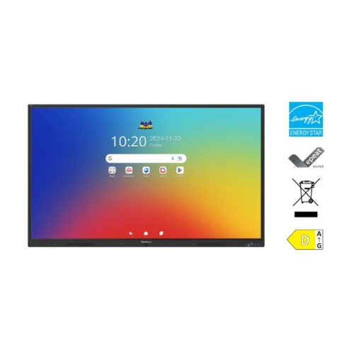 ViewSonic ViewBoard IFP6535-1-1C is a 65-inch EDLA-certified interactive flat panel designed for education and collaboration, featuring Android 16, an octa-core CPU, 64-point advanced multi-touch with palm rejection, and USB-C connectivity with 65W power delivery. It combines high-performance hardware with classroom-focused software, making it ideal for modern teaching environments.